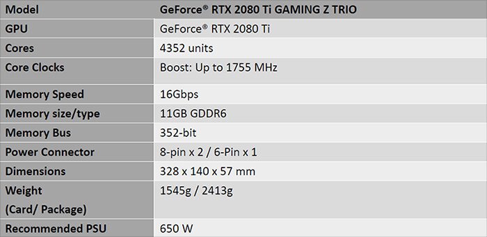 Se espera que la nueva tarjeta MSI GeForce RTX 2080 Ti GAMING Z TRIO esté disponible a partir del 16 de abril de 2020.