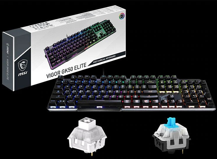 MSI anuncia el teclado para juegos de la serie VIGOR GK50 ELITE, el mouse para juegos CLUTCH GM08 y el reposamuñecas VIGOR WR01 para brindar más opciones a los jugadores convencionales con la determinación de ganar y un diseño de juego refinado. Sorprendentemente elegante para juegos: lanzamientos GK50 ELITE con dos tipos de interruptores mecánicos, Kailh Box blanco y Kailh azul. Ambos interruptores se hacen clic, lo que significa que tienen un clic táctil y audible al presionar. El interruptor de caja blanca ofrece una mejor estabilidad, una experiencia de escritura más nítida, mejor durabilidad con 80 millones de pulsaciones y resistencia al agua y al polvo IP56.
