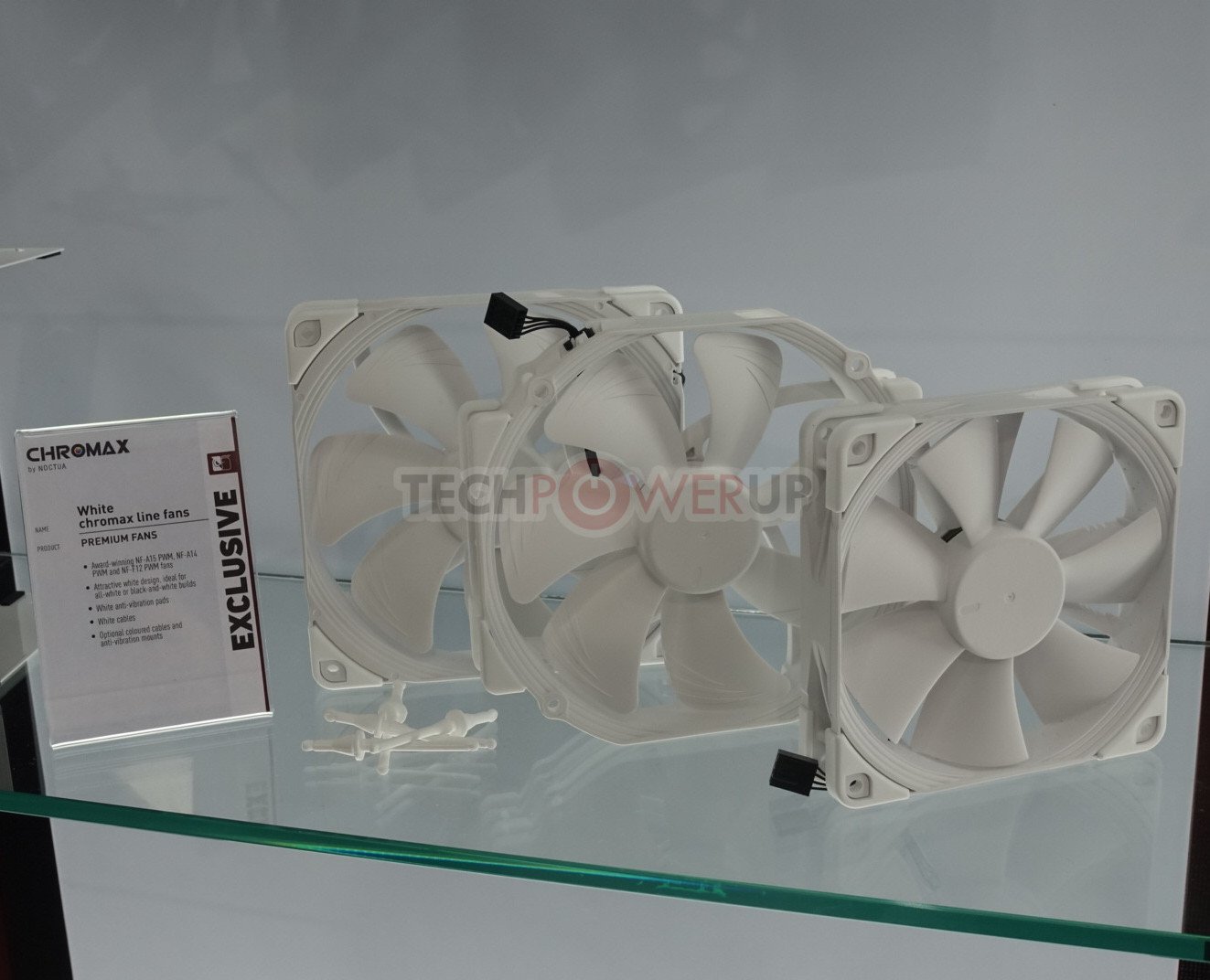 La línea Chromax de ventiladores en blanco y negro también se exhibió con los ventiladores NF-A20 PWM, NF-A12x25, NFA12x15 PWM, NF-A9 PWM, NF-A9x14 PWM y NF-A8 PWM disponibles en negro. Mientras tanto, los ventiladores NF-A15 PWM, NF-A14 PWM y NF-F12 PWM estarán disponibles en blanco. La ETA actual según el modelo se enumeró como Q4 2019 o Q1 2020.