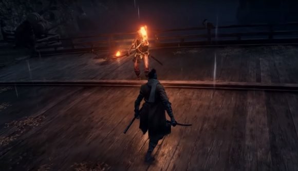 Los edificios en llamas y la lluvia recuerdan mucho a Nioh de Team Ninja, aunque también hay un montón de característico estilo Dark Souls de From en el clip. Tener un reloj