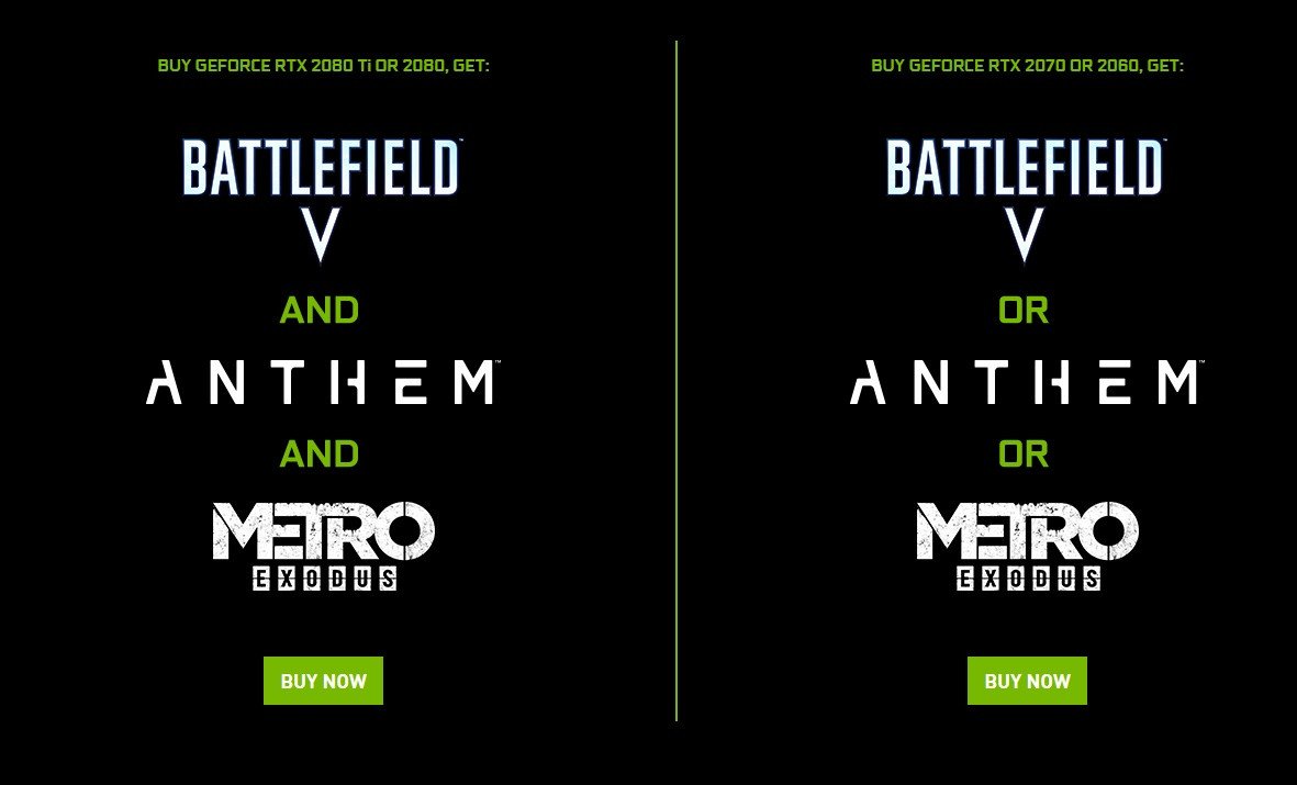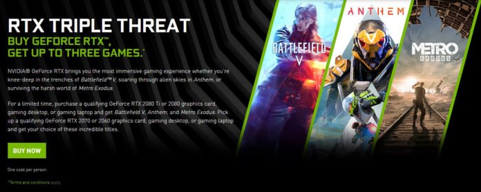 NVIDIA ha actualizado su paquete de juegos RTX, que ofrece juegos a los usuarios cada vez que compran una tarjeta gráfica RTX elegible. El paquete que se ofrecía anteriormente era un Anthem o Battlefield V, para los jugadores que compraron la tarjeta gráfica RTX 2060 o 2070; y ambos juegos para compradores del RTX 2080 y RTX 2080 Ti. Ahora, los jugadores que compran las tarjetas gráficas de mayor rendimiento de NVIDIA también pueden llevarse a Metro Exodus a casa, y los compradores de RTX 2060 y RTX 2070 ahora pueden elegir ese juego entre los demás.