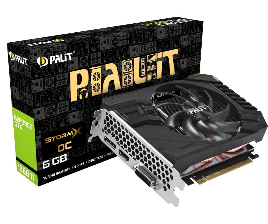 La Palit GeForce GTX 1660 Ti StormX OC y StormX están diseñadas para el mini-ITX que puede adaptarse perfectamente a la pequeña funda. La serie StormX está equipada con una aspa de ventilador de 10 cm de diámetro, que está diseñada para mejorar el rendimiento del enfriamiento al generar una corriente de aire y una presión de aire potentes. DrMOS también está disponible en GTX1660Ti StormX. que ofrece circuitos de alta corriente, funcionamiento con bajo nivel de ruido y reducción efectiva de la generación de calor. La próxima serie GeForce GTX 1660 Ti Dual está equipada con ventiladores dobles y también viene con efecto de iluminación LED.