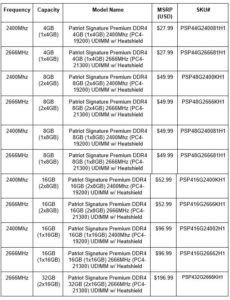 “Estamos encantados de presentar esta nueva y emocionante línea a los usuarios e integradores de computadoras”, dijo Roger Shinmoto, Vicepresidente de Patriot. “La línea de productos UDIMM con memoria de DDR4 de Signature Premium ofrece lo que más necesitan los consumidores: una DRAM de excelente apariencia respaldada por un rendimiento sólido y un buen precio”.