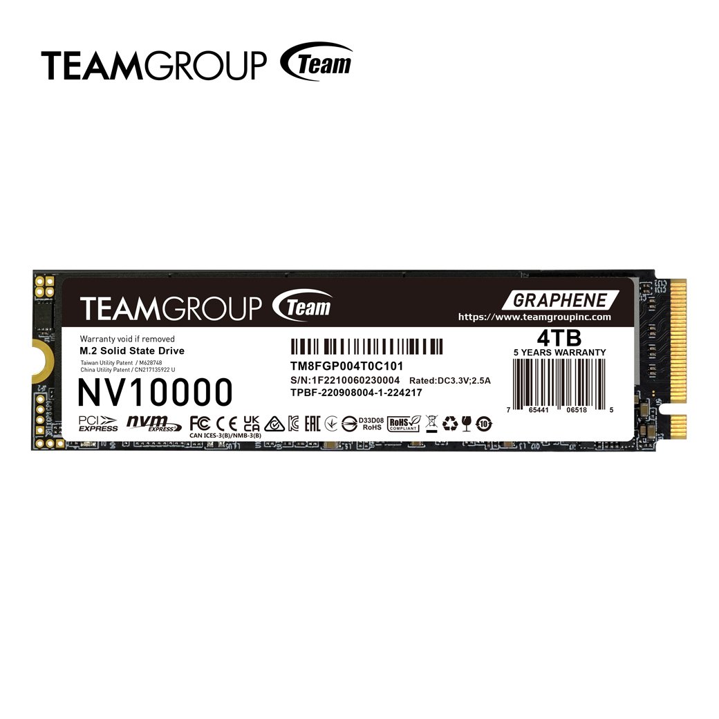 El SSD TEAMGROUP NV10000 M.2 PCIe 5.0 lleva el rendimiento a un nuevo nivel gracias a la tecnología 3D NAND y a la interfaz PCIe Gen5 x4, alcanzando impresionantes velocidades de lectura de hasta 10,000 MB/s. Disponible en 1TB, 2TB y 4TB, se adapta a las más recientes plataformas de Intel y AMD, ofreciendo versatilidad tanto para PC de escritorio como para portátiles. Diseñado para quienes buscan alta capacidad, durabilidad y eficiencia térmica, el NV10000 incorpora la exclusiva etiqueta disipadora de grafeno patentada por TEAMGROUP【1】, que reduce el calor de manera eficaz y garantiza un rendimiento estable incluso bajo cargas de trabajo intensas.