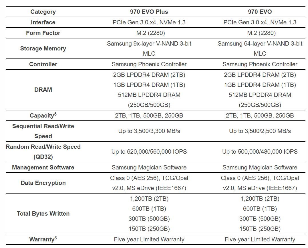 El 970 EVO Plus viene en una variedad de opciones de capacidad; Las versiones de 250 GB, 500 GB y 1 TB de capacidad ya están disponibles para su compra en todo el mundo, y la capacidad de 2 TB estará disponible en abril.