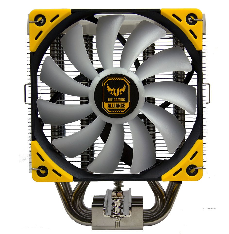 El nuevo refrigerador de CPU Mugen 5 TUF Gaming Alliance cuenta con una cubierta superior cuidadosamente diseñada, que incorpora los patrones únicos, así como el logotipo de la serie TUF Gaming Alliance de ASUS. La superficie grande y translúcida en la placa superior está equipada con LED RGB. Esta iluminación se ha mejorado aún más gracias al nuevo ventilador Kaze Flex 120 RGB, que ofrece colores ricos y efectos versátiles. Kaze Flex 120 utiliza ocho LED RGB dentro del anillo alrededor del motor del ventilador para una iluminación constante y brillante. Los usuarios pueden tomar el control total de la configuración RGB conectando el ventilador directamente a una placa base habilitada para RGB. De esta manera es posible sincronizar los colores y efectos utilizando el Asus Aura u otros sistemas RGB compatibles.
