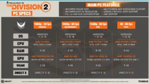 The Division 2 se perfila como uno de los lanzamientos más populares de 2019, especialmente porque el otro mundo compartido, el juego de disparos en tercera persona, Anthem, ha superado las expectativas. Y aunque Anthem ofrece imágenes muy impresionantes, también incluye requisitos de rendimiento relativamente elevados, al menos en comparación con los requisitos de la División 2 de un RX 480 para juegos de 1080, 60 FPS. Para 4K, 60 FPS, necesitará un compromiso de hardware mucho mayor, en la forma de AMD’S Radeon VII o tarjetas gráficas RTX 2080 Ti de NVIDIA, con un mínimo de 16 GB de RAM en el sistema y un Ryzen 7 2700X o Intel Core I7-8700X UPC.