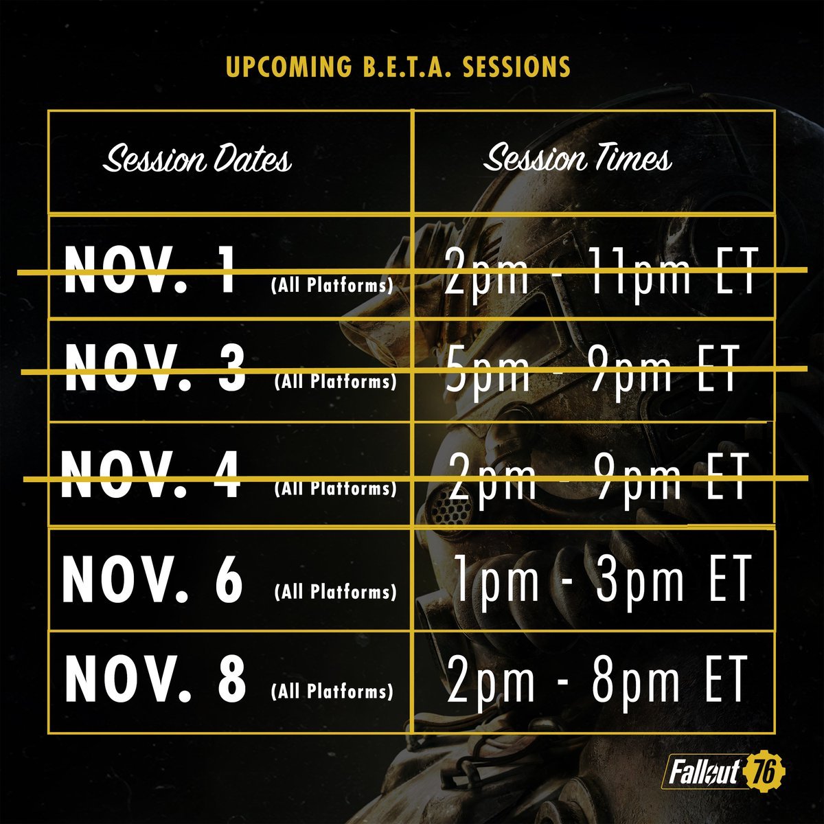 Ademas también dijo la misma empresa que el día 8 de noviembre sera el ultimo acceso a la beta de Fallout 76 a partir de las 3:00 pm.