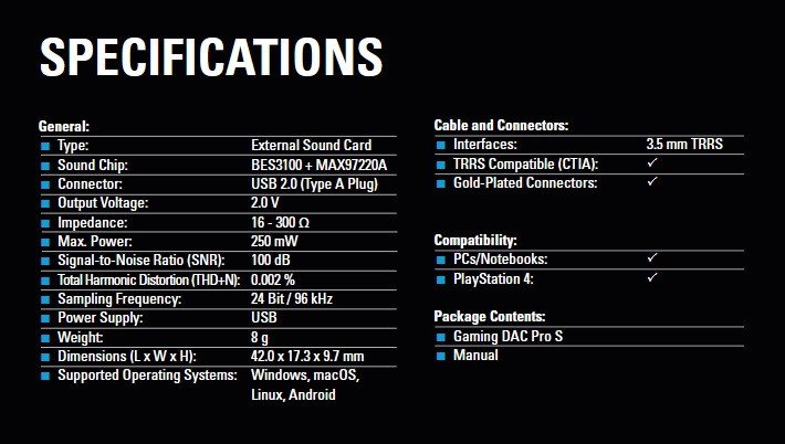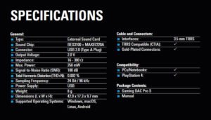 Para obtener la mejor facilidad de uso posible, no se necesita software para el Gaming DAC Pro S. El convertidor de señal analógica a analógica solo tiene que estar conectado a un puerto USB y luego a un auricular o altavoz – y para esto, se proporciona un puerto chapado en oro para un conector TRRS / estéreo. Aquellos que deseen usar dispositivos Android no se quedan fuera, ya que un adaptador OTG disponible por separado también se puede usar con el Gaming DAC Pro S.