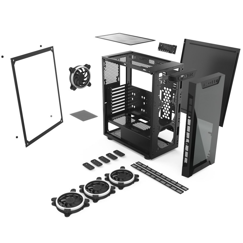 La iluminación RGB se puede ajustar manualmente mediante el botón dedicado en el panel frontal o mediante un software de placa base compatible como ASRock RGB LED, Asus Aura, EVGA RGB o MSI Mystic Light. El núcleo y el cerebro del sistema es el avanzado controlador integrado Aurora Sync PRO RGB / PWM que actúa como un centro inteligente para hasta 6 dispositivos compatibles. Permite una gran cantidad de efectos activados manualmente como Breathe u Wave, así como una mayor capacidad de expansión (es decir, los refrigeradores de CPU SilentiumPC Navis RGB o Fera RGB).