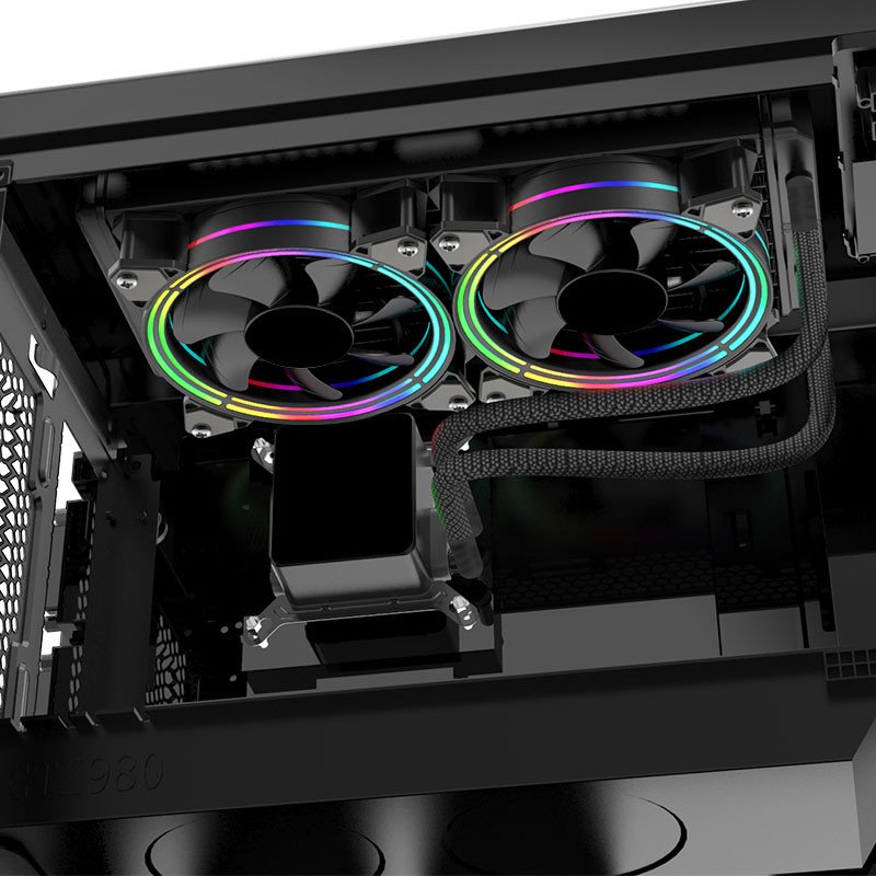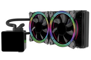 Spire presentó hoy la línea LCG-HSR de enfriadores de CPU líquidos de circuito cerrado todo en uno, con dos modelos, el CG-AE-LCG-H24SR-P con un radiador de 240 mm x 120 mm y el CG-AE LCG-H12SR-P “Solo”, con un radiador de 120 mm x 120 mm. Estos enfriadores se caracterizan por un bloque de bombeo cúbico, tubos de refrigerante con funda de nylon y uno o dos ventiladores CG-AE-H30K3AR-6PM incluidos. Estos ventiladores cuentan con difusores LED RGB a lo largo de las paredes interna y externa del marco, con 16 diodos que reciben la entrada de un conector RGB estándar de 4 clavijas. A diferencia del paquete independiente del ventilador, Spire no incluye controladores LED RGB con estos refrigeradores.