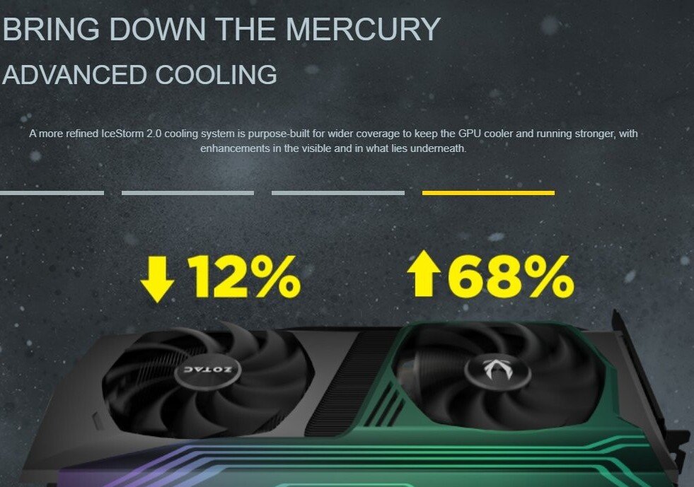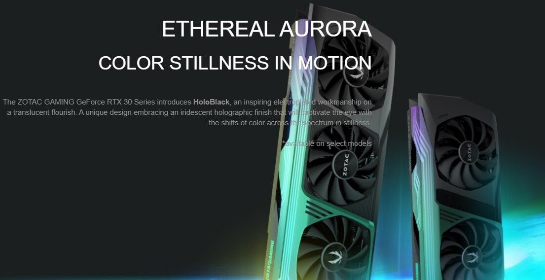 Un tema recurrente con las tarjetas “Ampere” parece ser una placa posterior más gruesa que la estándar. En esta tarjeta, la placa posterior parece gruesa, con elementos RGB por todas partes. En cuanto a la solución de enfriamiento, cuenta con una configuración de triple ventilador que ventila un gran disipador de calor y posiblemente una placa de base debajo. Podemos ver el conector multi-GPU de nueva generación. Las velocidades de ventilador variables para ventiladores individuales podrían ser una nueva tendencia de diseño con esta generación. Aparecieron más versiones del RTX 3090 Trinity Holo, que revelan tres conectores de alimentación PCIe de 8 pines. También aparecieron representaciones del RTX 3080 Holo de ZOTAC, revelando un diseño de producto más pequeño con solo dos ventiladores y dos entradas de alimentación PCIe de 8 pines. Un render transparente muestra que NVIDIA planea usar dos grados del mismo silicio GA102 tanto en RTX 3090 como en RTX 3080, que difieren en la configuración del núcleo, el bus de memoria.