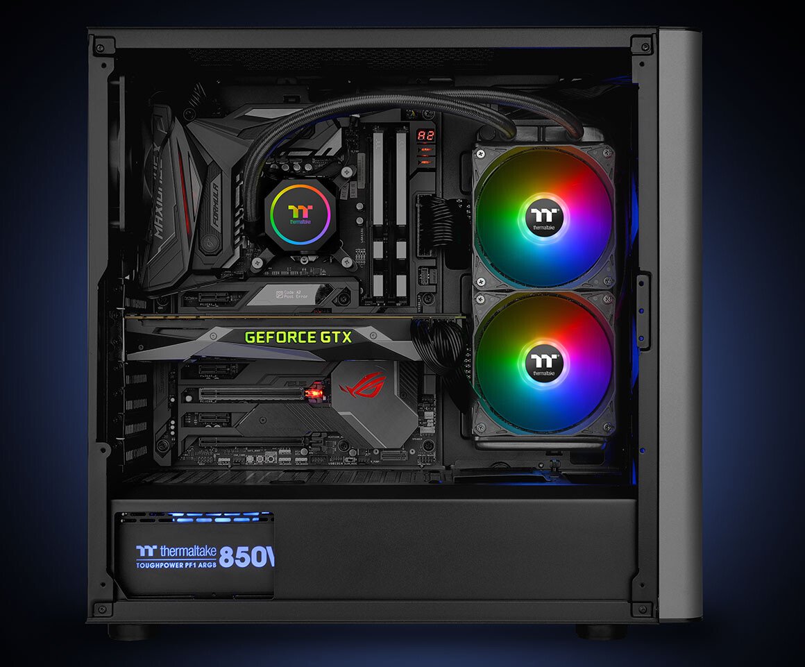 La bomba de alta calidad, oculta en el brillante bloque de agua ARGB, asegura una excelente circulación del refrigerante que mantendría la placa de cobre siempre fría. El radiador de superficie grande combinado con los ventiladores del radiador envía el calor de una manera altamente eficiente. En los ventiladores del radiador diseñados con alta presión estática están los 16,8 millones de LED de colores que están listos para sincronizarse con placas base con capacidad de 5 V RGB de ASUS, Gigabyte, MSI y ASRock, lo que permite a los usuarios mostrar su creatividad. Los usuarios también pueden controlar los efectos de iluminación de los ventiladores a través de los Smart Fan Controllers que están conectados al TH120 / TH240 ARGB AIO. ¿Busca una solución todo en uno fácil y rentable para enfriar la CPU? El TH120 y el TH240 ARGB.