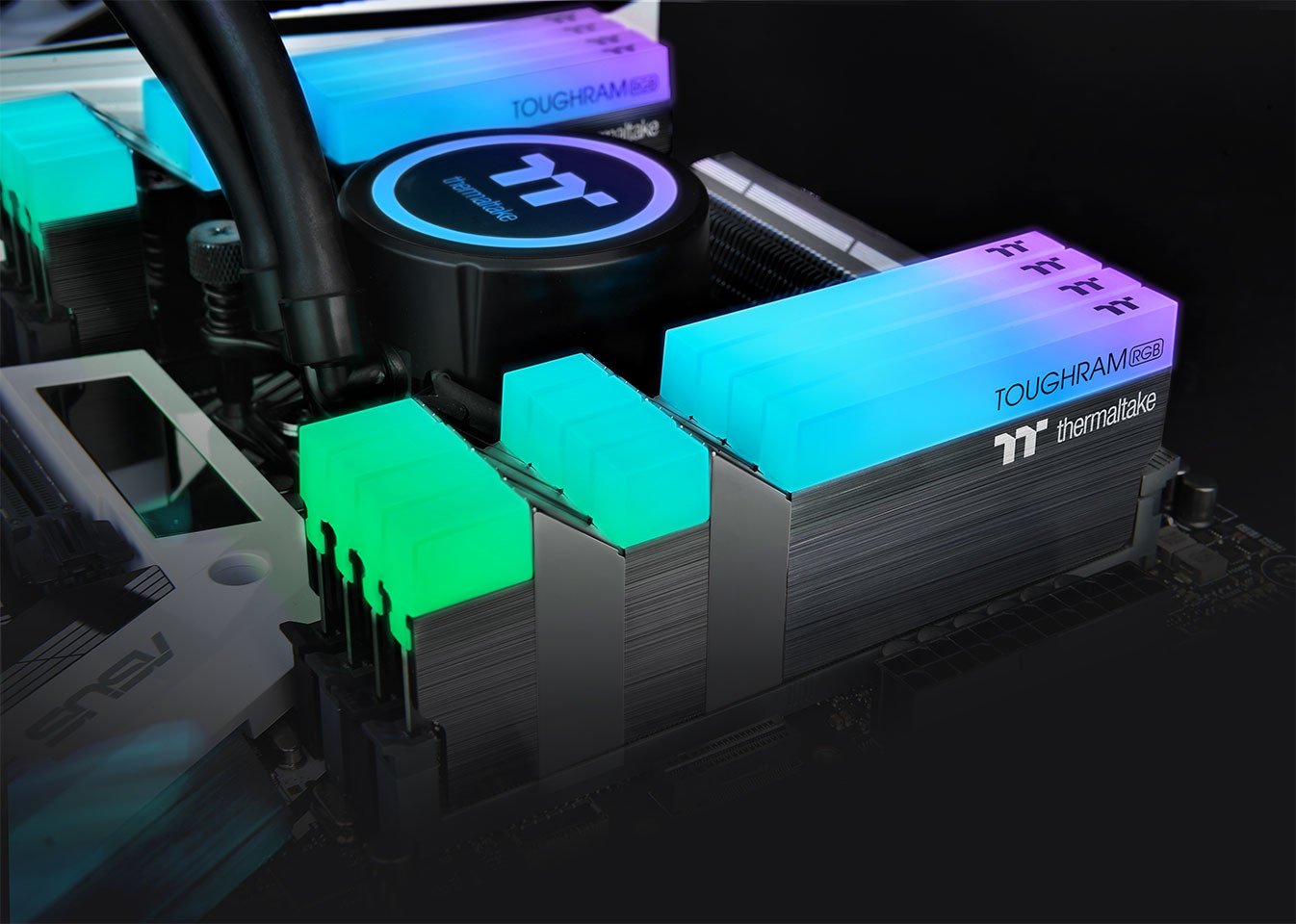 Los usuarios de TT RGB PLUS, TT AI Voice Control, Razer Chroma y Amazon Alexa RGB pueden construir su propio ecosistema con los 10 LED direccionables súper brillantes de TOUGHRAM para una iluminación RGB de 16,8 M. TOUGHRAM RGB también admite placas base: ASUS Aura Sync, GIGABYTE RGB Fusion, MSI Mystic Light Sync y ASRock Polychrome con un encabezado RGB direccionable de 5 V para cumplir con los requisitos altamente personalizados.