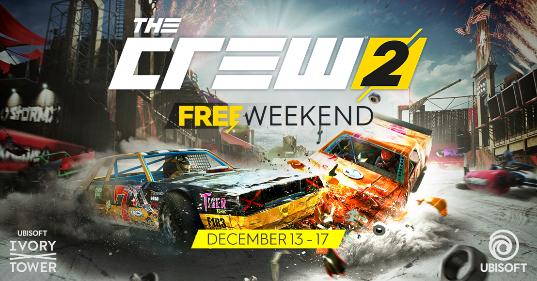 El día de hoy, Ubisoft® anuncia que The Crew® 2 estará disponible para jugar de manera gratuita a partir del 13 de diciembre y hasta el 17 de diciembre en PC, PlayStation 4 y la familia de dispositivos Xbox One. Los usuarios tendrán acceso al juego completo – incluyendo la nueva adición, la disciplina “Demolition Derby” y el modo PvP – además de cientos de retos y la libertad de explorar los Estados Unidos por tierra, aire y mar tras el volante de sus vehículos soñados, ya sea en modo individual o en modo cooperativo con otros cuatro jugadores.