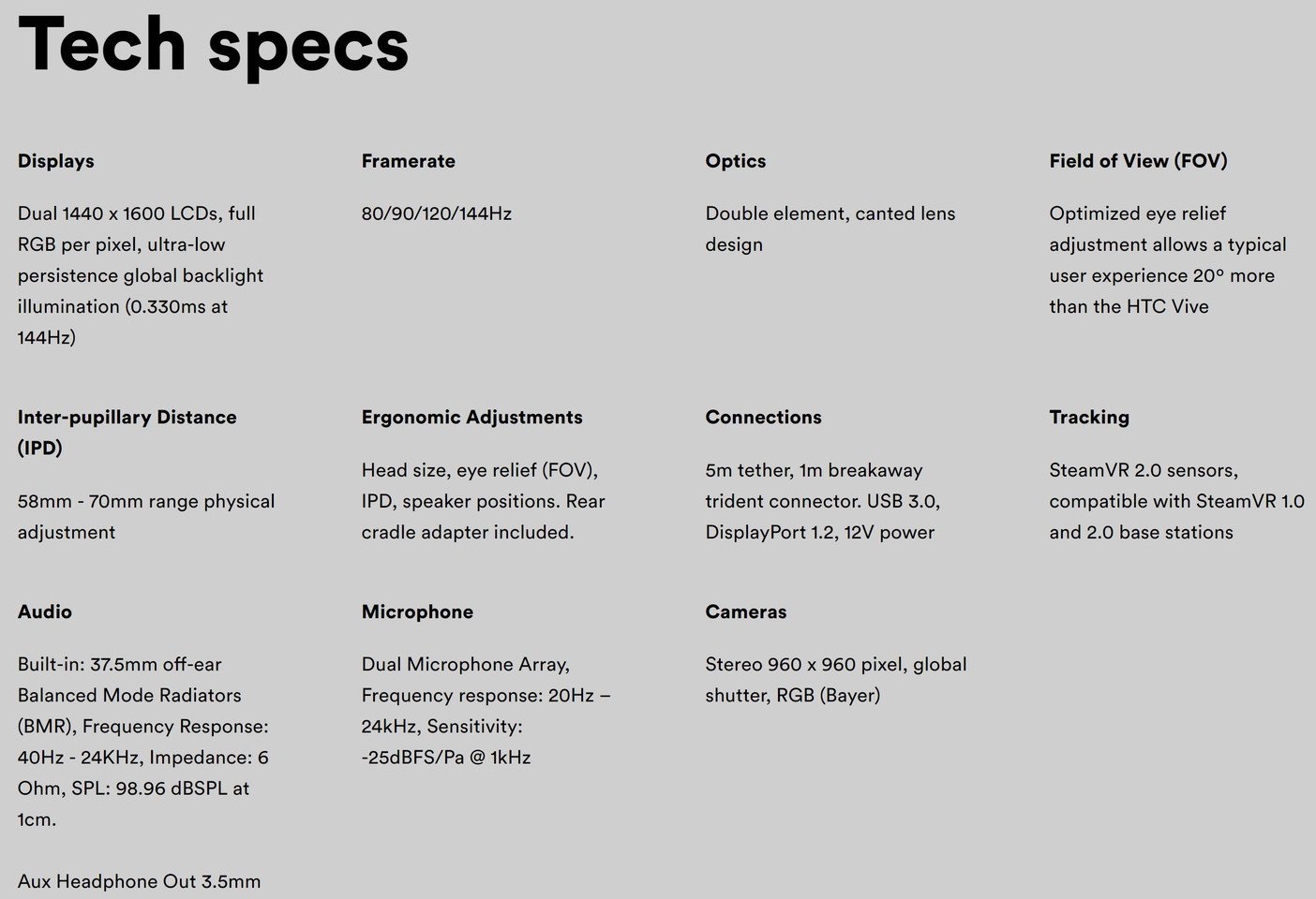 Dejando el nombre a un lado, las especificaciones del índice de válvulas que se filtraron antes terminan siendo verdaderas con el producto minorista. El auricular utiliza dos pantallas LCD RGB de 1440×1600, que según Valve ayudan a proporcionar un 50% más de subpíxeles en relación con una pantalla OLED. Esto, a su vez, debería dar como resultado una mayor nitidez efectiva para la misma potencia de renderización, y se acentúa aún más mediante un factor de relleno 3 veces mejor para mitigar el temido efecto de la puerta de pantalla. El auricular funciona a 120 Hz con total compatibilidad hacia atrás a 90 Hz para trabajar con títulos de realidad virtual creados alrededor de esa especificación y, lo que es más interesante, también es compatible con un modo experimental de 144 Hz. Los jugadores de PC han sabido por mucho tiempo los beneficios de los cuadros de cuadros más altos, y esto es especialmente válido con la realidad virtual, pero el tiempo dirá cómo funciona el resto del ecosistema. Igualmente importante para los juegos de realidad virtual es el período de iluminación, lo que permite que las imágenes en pantalla permanezcan nítidas mientras está en movimiento, así como cuando está en reposo. La válvula reclama hasta una reducción de 5x aquí, con un período de iluminación nominal de 0.33 a 0.53 ms, dependiendo de la tasa de cuadros en tiempo real. Más para ver más allá del descanso, así que asegúrese de hacerlo si esto le interesa.